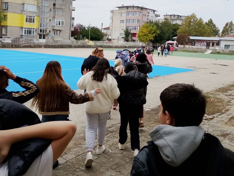 Евакуацията се извърши организирано и без паника. Учениците показаха знания как да действат при земетресение, ако се намират в училищната сграда.